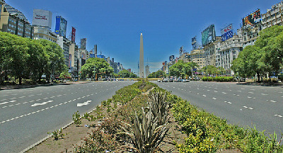 Der Obelisk auf der Avenida 9 de Julio im Zentrum von Buenos Aires, die breiteste Straße der Welt....^